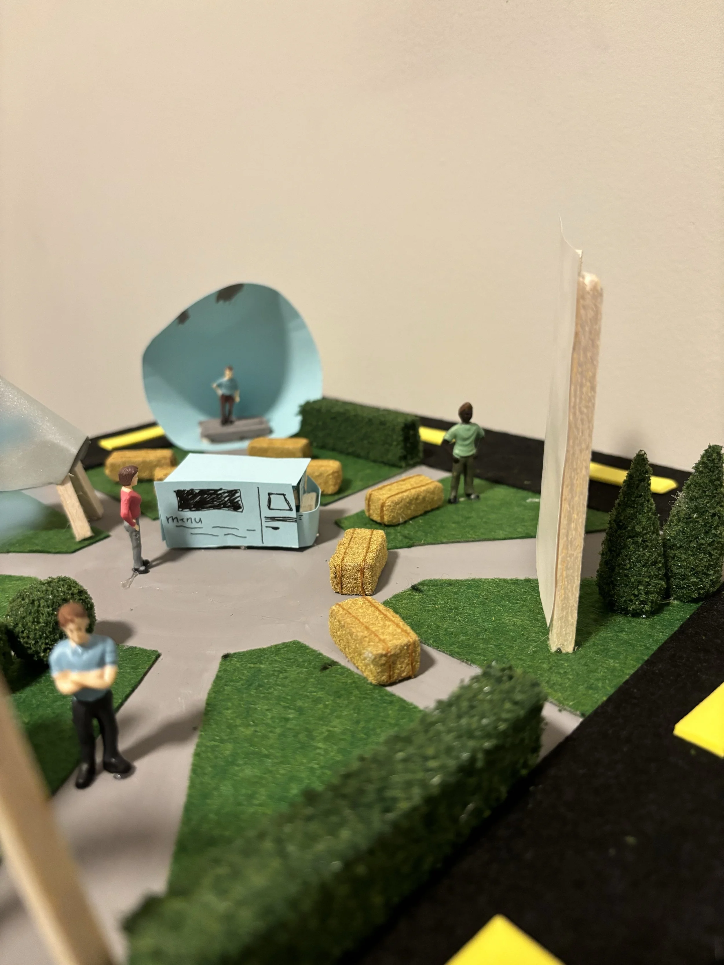 I knew I didn’t want to design an app with someone already out there that doesn’t work. So for user testing I created a diorama so my audience could have something to visualize instead of just an event proposal packet